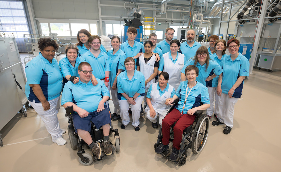 Unser Team besteht aus Angestellten, Mitarbeitenden (Menschen mit Beeinträchtigung) und Lernenden. Wir waschen, bügeln, sortieren und flicken, um unseren Kunden einen Topservice zu bieten. Dies geschieht einerseits mit modernsten Geräten und andererseits in Hand-Verarbeitung.